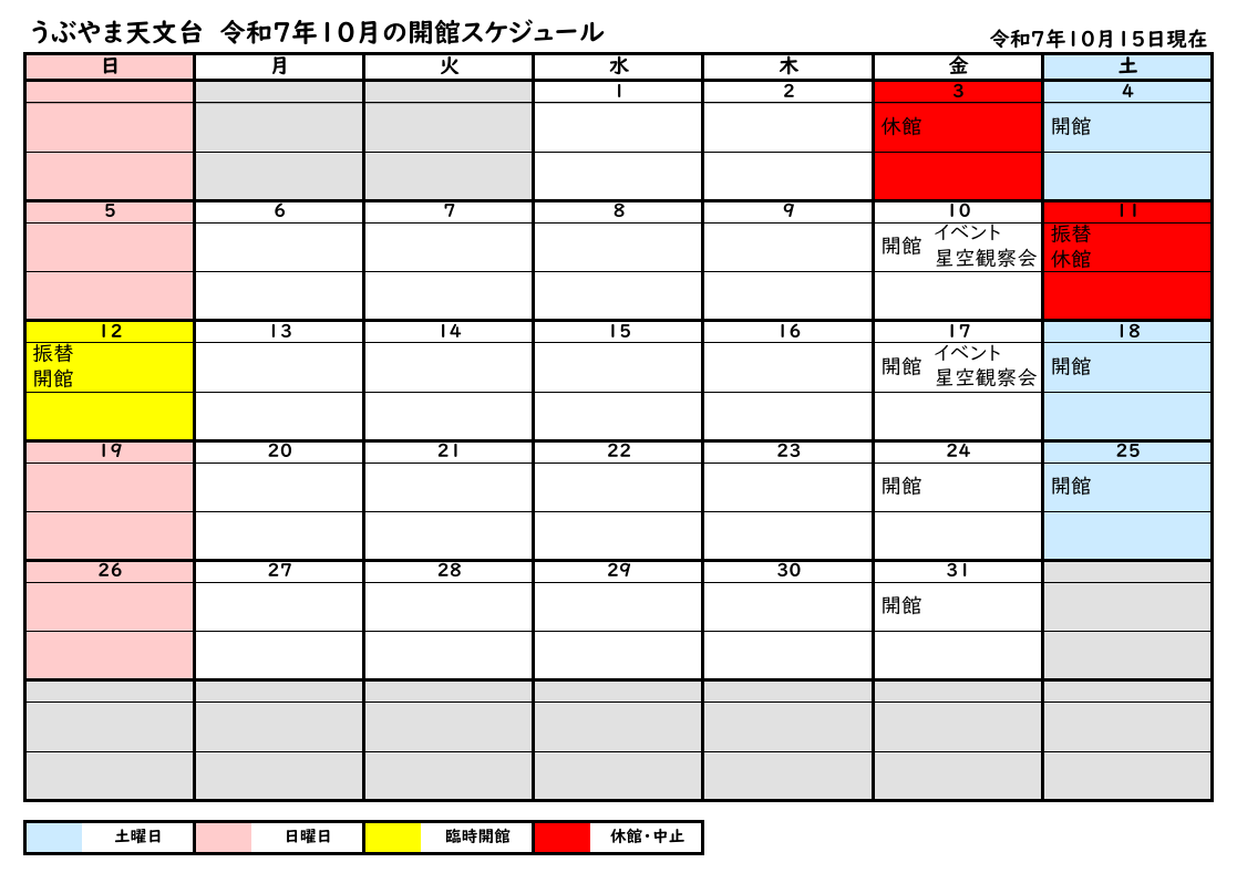 10月のうぶやま天文台星空情報3(※10月15日追記) (PDFファイル: 551.3KB)