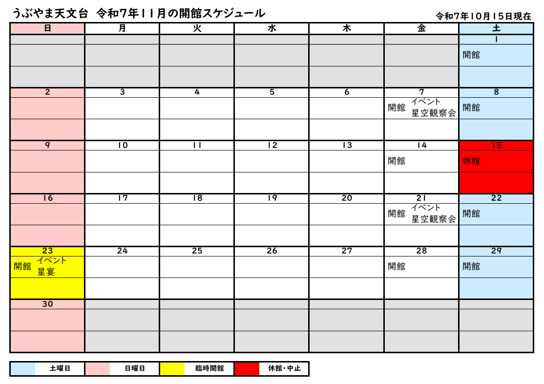 11月のうぶやま天文台星空情報1 (PDFファイル: 375.2KB)